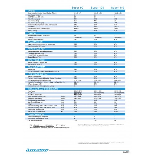 Simple, functional, economic The new Super T3 tractor family from Landini has been designed to replace the popular Globalfarm series. Supplied in both two- and four-wheel drive versions, this low-cost tractor combines a simple design with excellent performance and functionality.